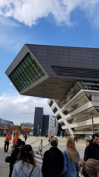 The exterior of the Zaha Hadid-designed library at WU Vienna.