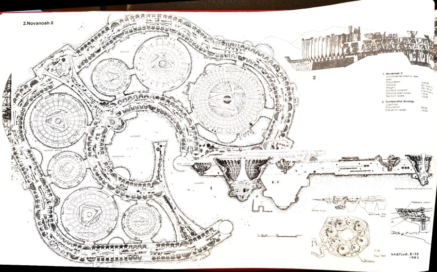 The design for Novanoah II, a floating arcology on the continental shelf or open sea. Author’s scan from Arcology: The City in the Image of Man